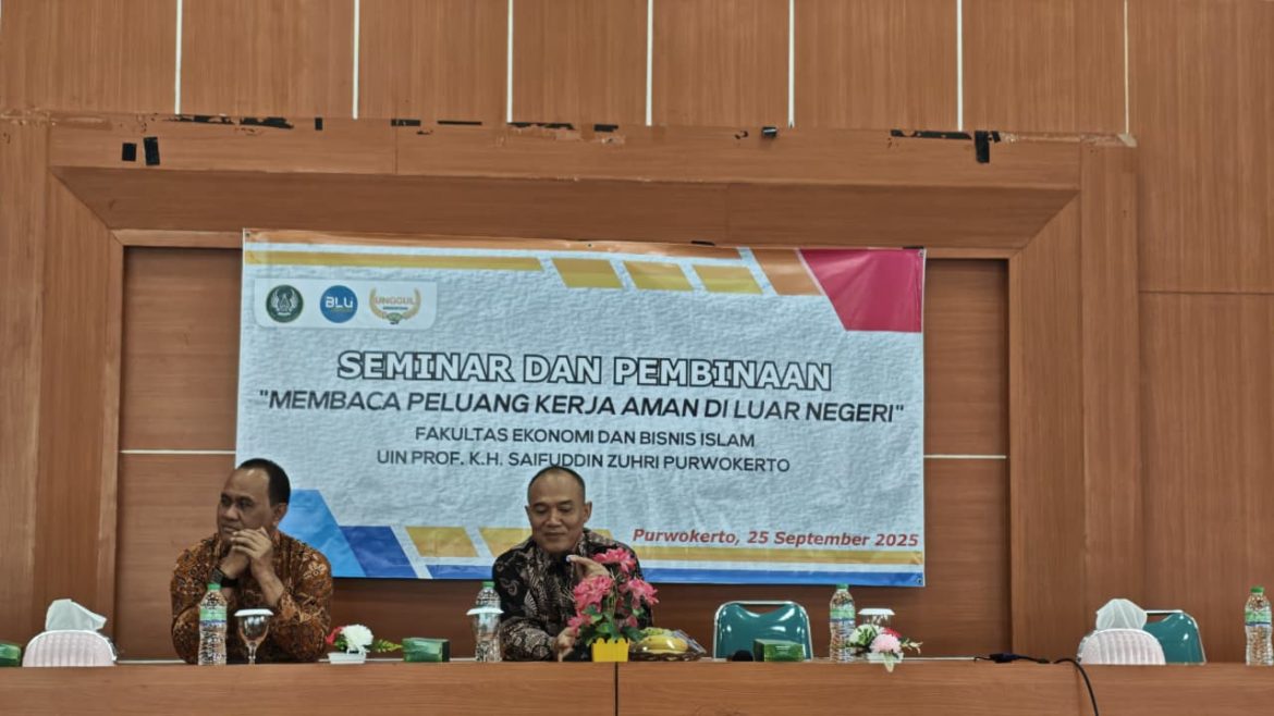 Purwokerto, betah.co.id – Fakultas Ekonomi dan Bisnis Islam (FEBI) Universitas Islam Negeri Prof. K.H. Saifuddin Zuhri (UIN Saizu) Purwokerto menggelar seminar bertajuk “Membaca Peluang Kerja Aman di Luar Negeri.”