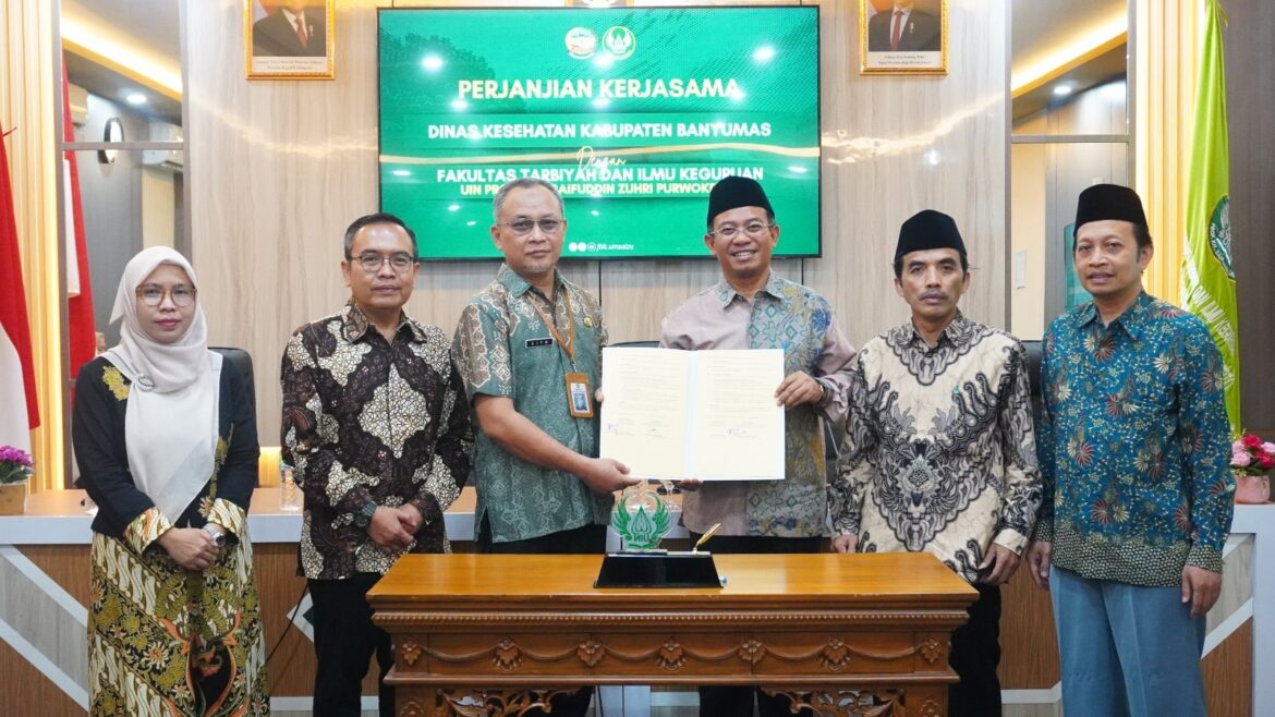 Purwokerto, betah.co.id – Fakultas Tarbiyah dan Ilmu Keguruan (FTIK) UIN Prof. K.H. Saifuddin Zuhri (UIN Saizu) Purwokerto menjalin kerjasama strategis dengan Dinas Kesehatan (Dinkes) Kabupaten Banyumas. Penandatanganan perjanjian kerja sama (PKS) ini dilaksanakan di Meeting Room K.H. A. Wahid Hasyim FTIK UIN Saizu pada Jumat (10/10/2025) pukul 08.00 WIB.