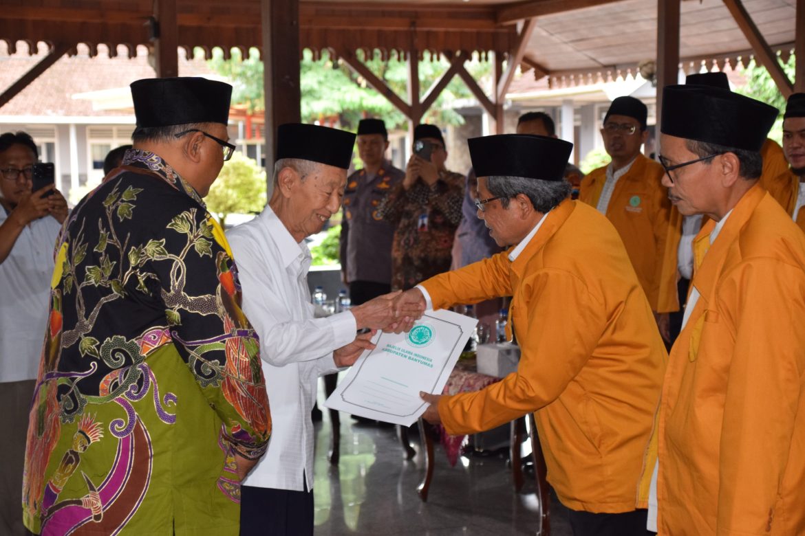 Purwokerto, betah.co.id – Majelis Ulama Indonesia (MUI) Kabupaten Banyumas kini memiliki wajah baru. Sebanyak 70 pengurus MUI Banyumas Masa Khidmat 2025–2030 resmi dikukuhkan pada Kamis (11/09/2025) di Pendopo Si Panji Purwokerto. Pengukuhan dilakukan langsung oleh Ketua MUI Provinsi Jawa Tengah K.H. Dr. Ahmad Darodji, disaksikan Sekretaris Daerah Banyumas Dr. Agus Nur Hadie, jajaran Forkopimda dan undangan lain.