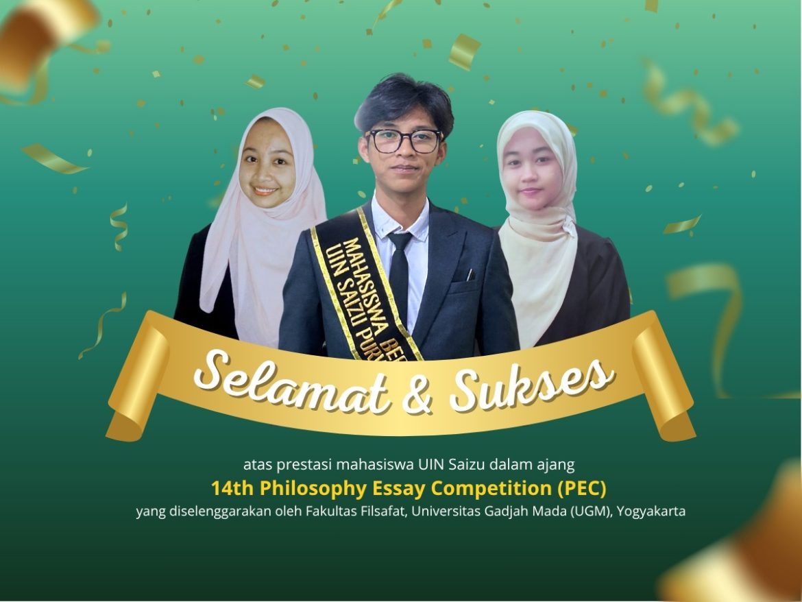 Purwokerto, betah.co.id – Tiga mahasiswa Program Studi Pendidikan Agama Islam (PAI) UIN Prof. K.H. Saifuddin Zuhri (UIN Saizu) Purwokerto kembali mengharumkan nama kampus dalam ajang bergengsi nasional 14th Philosophy Essay Competition (PEC) di Universitas Gadjah Mada (UGM), Yogyakarta.